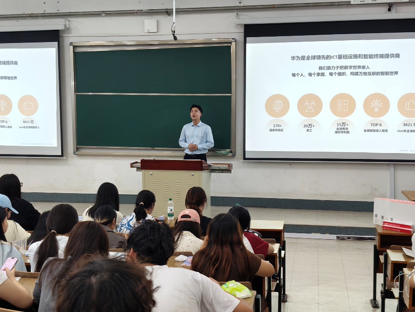 宣讲会由华为慧通大连地区人力资源负责人刘海元主持,大连区域零售经理王瑞林作为主讲人,围绕公司核心业务架构、全球品牌愿景、关键人才需求方向及专属培养机制等核心维度,进行了系统且深入的阐述,让学生对华为终端的发展格局与人才培养体系有了全面认知。