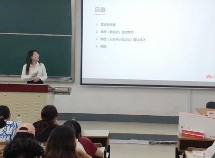 为调动现场氛围,活动过程中巧妙穿插多轮互动环节,有效激发学生参与热情,现场互动氛围持续升温。随后,华为慧通面试官潘健聚焦招聘核心环节,就面试具体流程、高频问题类型及能力评估关键要点,开展专项讲解与实操指导,为学生梳理求职准备方向。