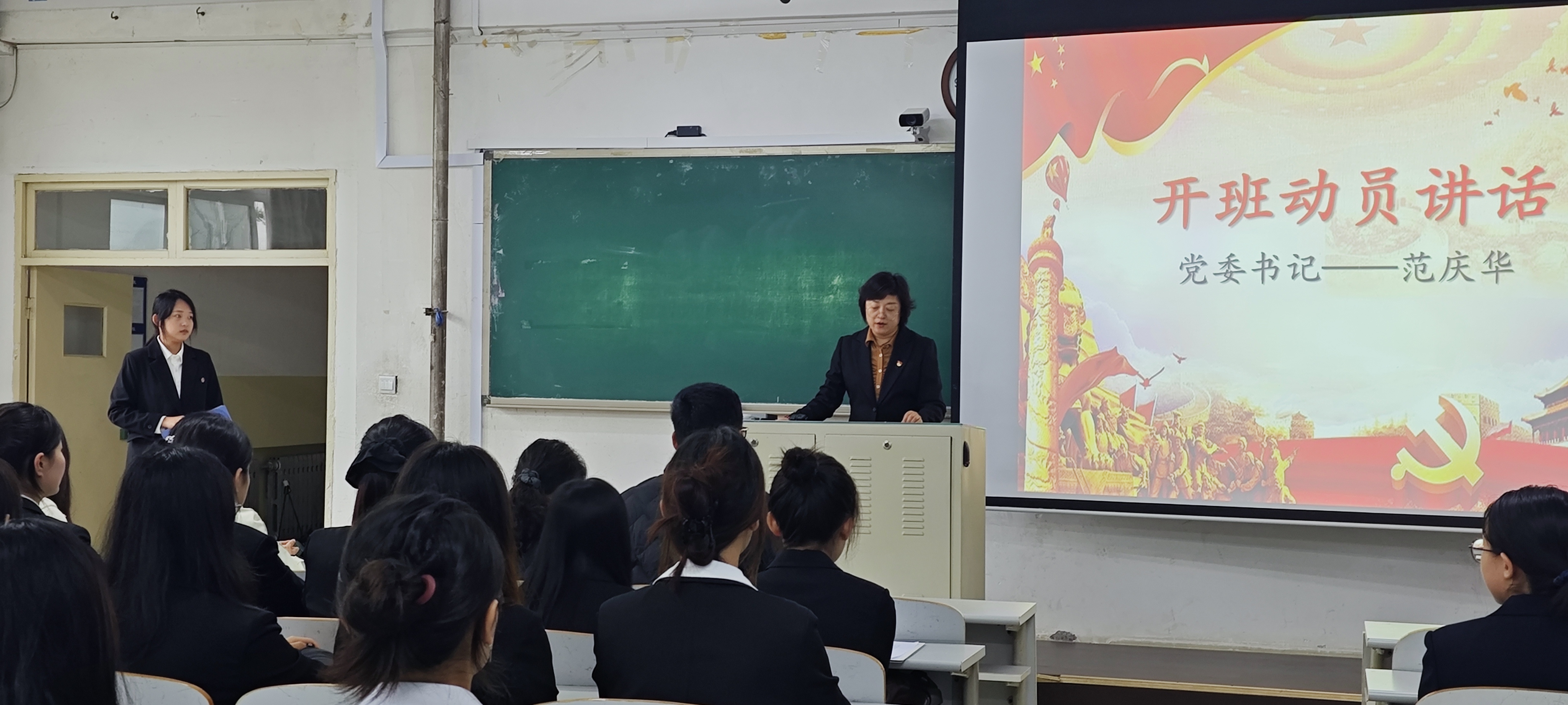 伴随着激昂的国歌旋律,入党积极分子培训班开班仪式正式拉开帷幕。首先,范庆华发表开班动员讲话。她对各位老师、同学成为入党积极分子表示热烈祝贺,并着重强调,加入中国共产党不仅是一种荣誉,更是一份沉重的责任。作为党的后备力量,入党积极分子肩负着重大的历史使命。她鼓励学员们坚定理想信念,不断提升自身的政治素质和业务能力,时刻以党员的标准严格要求自己,在学习、工作和生活中发挥先锋模范作用,为实现党的目标贡献力量。