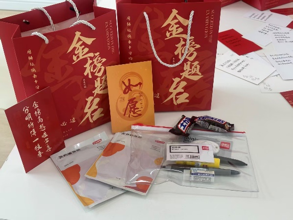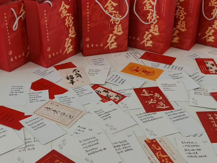 暖心关怀显温情,同心助力考研梦。会前,学院精心筹备了包含文具、暖贴、巧克力等实用物品的考研加油包,为寒冬里冲刺的学子送上温暖与能量。学院领导班子成员和毕业生辅导员亲笔书写祝福明信片,将殷切期望与美好祝愿倾注于笔墨之间,传递给每一位逐梦人。