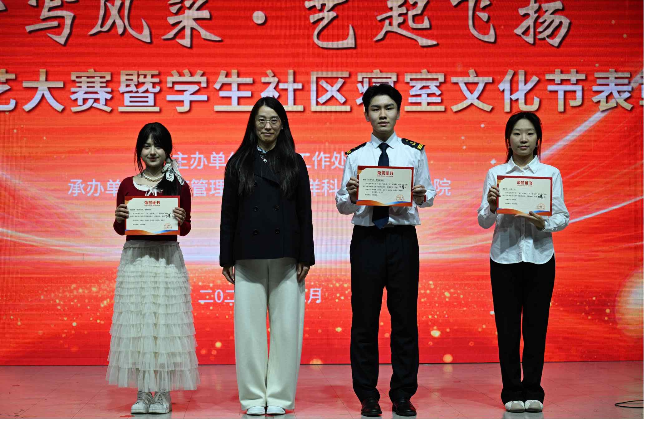 活动现场氛围热烈,黑石礁、大黑石两校区寝室代表轮番登台竞技,优美的歌声、精湛的舞蹈、特色的才艺展演持续点燃全场热情,赢得阵阵掌声与喝彩。经激烈角逐和严格评审,我院民族舞《丝路和鸣》斩获大赛一等奖;海洋法律与人文学院、海洋与土木工程学院荣获二等奖;航海与船舶工程学院、外国语与国际教育学院、机械与动力工程学院荣获三等奖;水产与生命学院、海洋科技与环境学院、食品科学与工程学院、信息工程学院、中新合作学院荣获优秀奖;大学生艺术团荣获最佳表演奖。