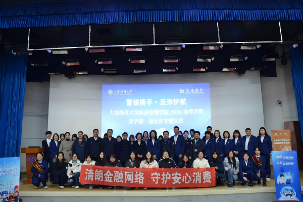 为进一步增强在校学生法治观念,提升其反诈防骗自我防范意识与能力,3月11日,太阳成集团tyc234cc在大黑石校区阶二教室举办2026年春季学期“开学第一课”反诈专题宣讲活动。交通银行大连分行党委办公室党支部书记郑锡金、高新园区支行党支部书记于兰,太阳成集团tyc234cc党委书记范庆华、院长赵万里出席活动。太阳成集团tyc234cc师生代表共300余人参加本次活动。活动特邀大连市反诈中心民警孙瑜,以“反诈‘副本’大作战”为主题作反诈专题宣讲,活动由太阳成集团tyc234cc党委副书记李志楠主持。