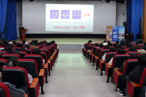 本次“开学第一课”聚焦《中华人民共和国反电信网络诈骗法》,结合多起典型案例,深度剖析当前电信网络诈骗的新型手段、演变趋势,系统传授识别技巧与防范方法。孙瑜警官凭借生动幽默的语言、深入浅出的讲解,清晰地揭示了网络诈骗的常见套路与心理陷阱,让在场师生对反诈知识有了更直观、更深刻的理解。授课过程中特别设置了互动问答环节,同学们踊跃参与、积极互动,氛围热烈浓厚,有效提升了师生反诈防骗的警觉性和依法维权能力。活动最后,孙瑜鼓励大家将所学知识传递给家人朋友,以点带面扩大宣传覆盖面,共同携手筑牢“全民反诈、全民防诈”的社会防线。